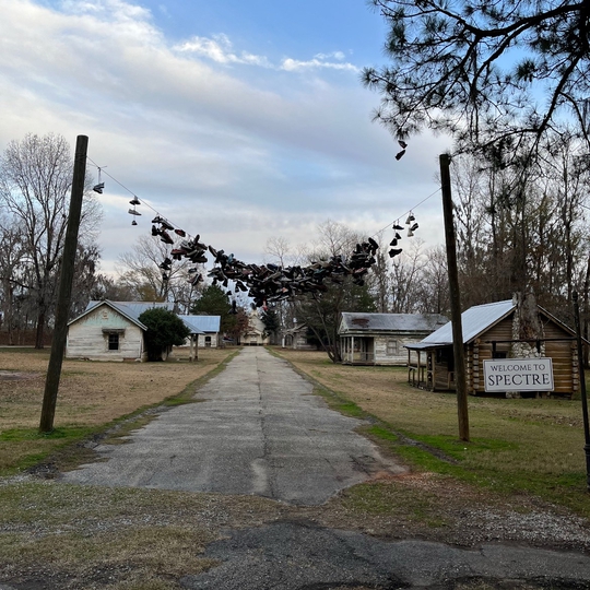 Who wouldn't want to visit the movie location for the idyllic town of Spectre in Tim Burton's film "Big Fish?" Visitors may be disappointed as the actual movie set town is brown and dilapidated. Some structures are still standing, and it is still a trip worth taking...but proving the movie town was indeed a spectre.