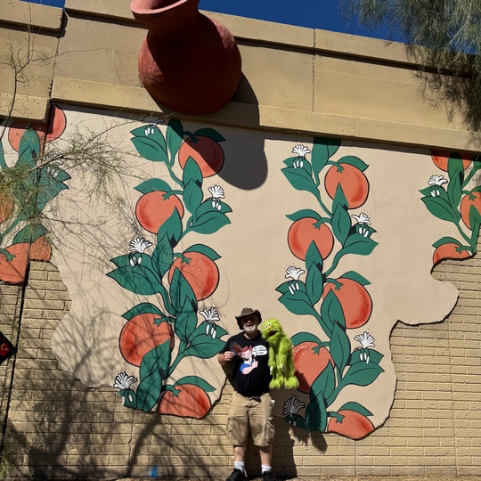 The Peaches Water Clock Vessel is part of a series of oversized pots, cups, and bowls called the "Squaw Peak Pots," a collection that emerged in the early 1990s as an artistic exhibit titled "Wall Cycle to Ocotillo." As time has passed, a number of these sculptures have gradually vanished. Out of the initial 35 pots, cups, and bowls, approximately 15-18 endure. Are you up for the challenge of locating all of them?
