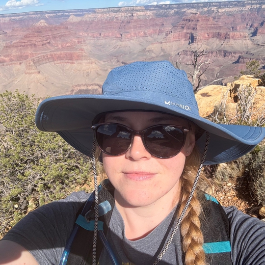 Powell Point on the canyon rim trail is off Hermit Road. The course features incredible, colorful panoramas and the Powell Memorial which honors the pioneer Wesley Powell who led the first recorded journey down the Colorado River in 1869. You'll see Maricopa Point and the Orphan lode Mine from other vantage points but what dominates the landscape is the vast granite memorial. The views from the area behind the monument seem even better than the view of the canyon from the top! Behind the memorial, you'll find a few benches and a rock ledge to snap some pictures of your adventure. The views at this point stretches further west until Hopi Point.