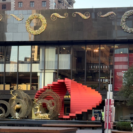 This fountain is also an art installation - featuring a bright red, geometrical sculpture rising out of the basin. Called "Double Ascension," the sculpture was created by Herbert Bayer in 1973. This is also the fountain from which the water streaming down Bunker Hill Steps originates.