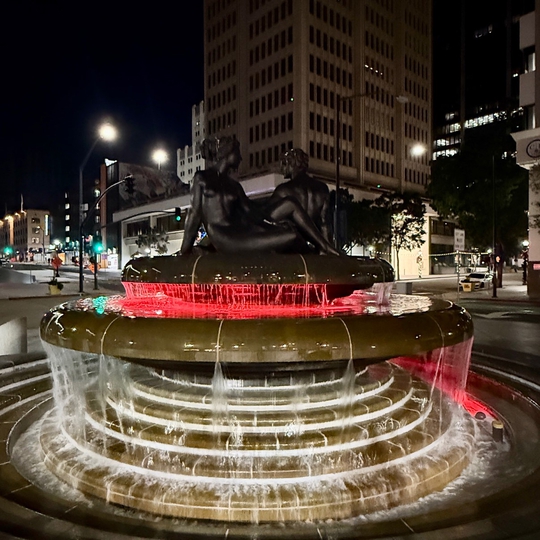 The Fountain of Two Oceans, crafted by Sergio Benvenuti in 1984, is an open-air fountain and sculpture situated in San Diego, California. This installation showcases a pair of nude figures, a man and a woman, positioned to face each other.