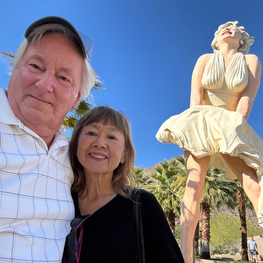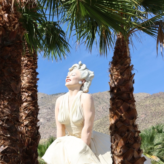 The 26-foot-tall Marilyn Monroe statue by artist Seward Johnson is now permanently back in Palm Springs after 7 years of touring the world. The giant Marilyn statue originally started out in Chicago, then spent 2012-2014 in Palm Springs before hitting the road and making stops in New Jersey, Bendigo (Australia), and Stamford, CT. Fun note: The Palm Springs Resorts Group bought the controversial statue for $1 million - Zoo-Wee Mama!