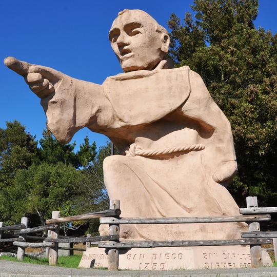 A more comical rendition of the venerated Spanish Franciscan priest was created in 1976 by Louis DuBois. A large, misshapen, disproportionate finger seems to be pointing straight to the Pacific Ocean, but is actually revealing the direction of where he died - the San Carlos Mission. The malformed stucco statue is here to stay even though many locals apparently dislike it - which is perhaps a metaphor for the controversial figure who is seen as both saint and subjugator.