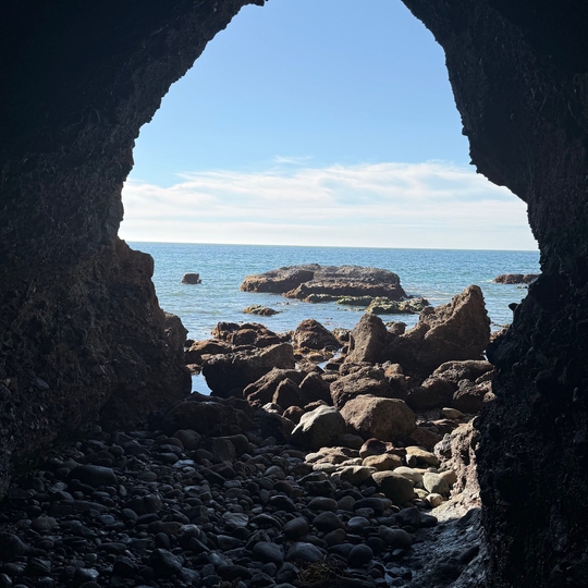 To get to the Dana Point Sea Cave, park in one of the lots near the Ocean Institute. Then walk past the Ocean Institute towards Dana Cove Park. You'll see a large, green, grated walkway with stairs. Take those stairs and follow the coast to the right for the next .6 miles before you reach the cave. You'll be entering from the back door so be on the lookout for a 3.5-foot wide by 8-foot tall opening. Take this opening to enter the larger cave. Remember to go at low tide and keep in mind you'll probably get your feet wet.