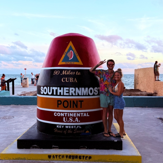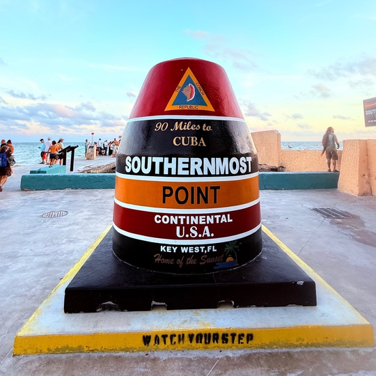 The Southernmost point in the United States is marked by a buoy in Key West, Florida at at the corner of South and Whitehead Streets. This anchored concrete buoy is now a tourist attraction that was established in 1983. Cuba is only 90 miles south of this point in Key West!