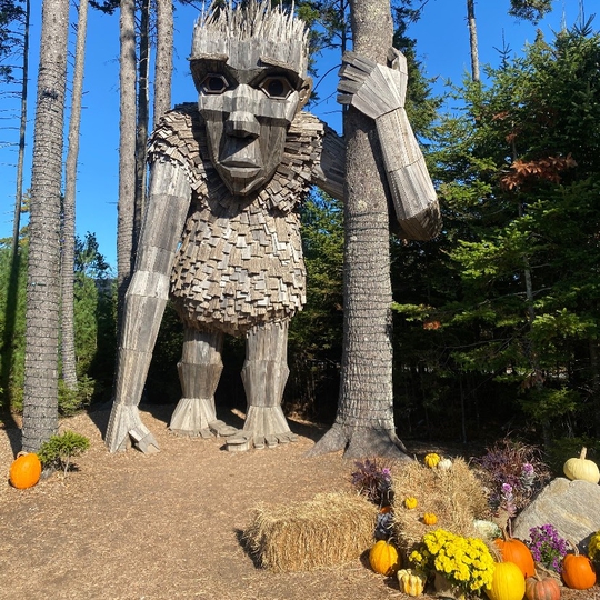 Thomas Dambo's giant forest sentries were created entirely from recycled wood and can be found throughout the natural areas of Coastal Maine Botanical Gardens. Dambo, a native of Denmark, christened them with Nordic names - Roskva, Gro, Soren, Lilja, and Frode. They are hidden throughout the woods, waiting for you to discover them!