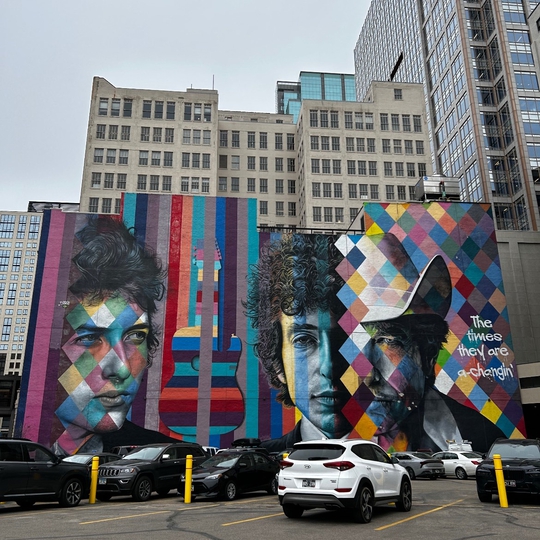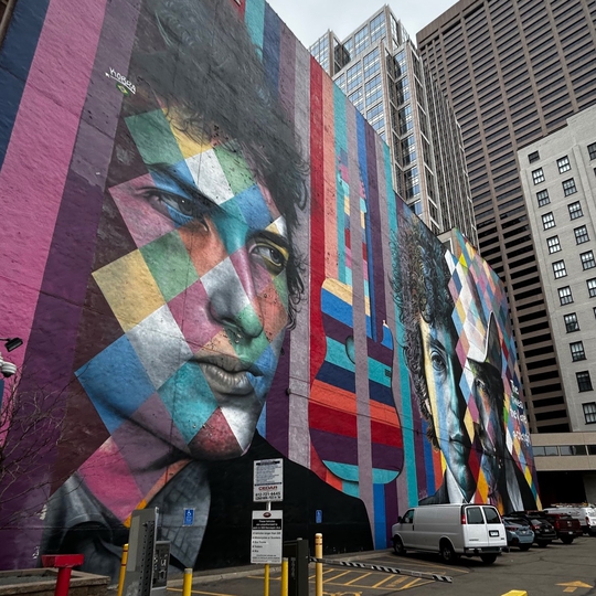 This colorful mural of Bob Dylan stands as the most extensive piece of public art crafted by the globally acclaimed street artist Eduardo Kobra in the United States thus far. Notably, it holds the distinction of being the most photographed image in Minnesota. This towering homage to Bob Dylan took form during the autumn of 2015 as a commissioned work. Over time, it has evolved into an iconic symbol within downtown Minneapolis and the Hennepin Theatre District.