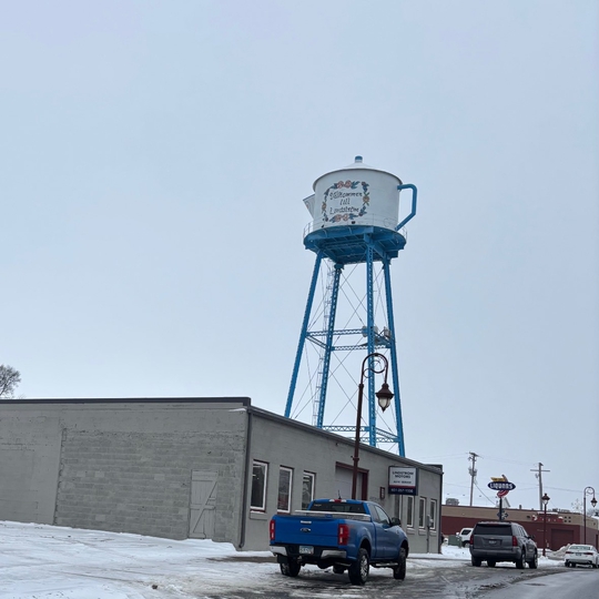 This Swedish-style coffee pot painted with dainty flowers is one of the most adorable water towers. It doubles as a welcome sign reading "Valkommen till Lindstrom." The town was settled in the 1850s by Swedish settlers - one of whom was Daniel Lindstrom. In 1902 the water tower was built and it remained operational until 1990. Today the tower is purely decorative - a roadside attraction that is also an eye-catching piece of Lindstrom history.