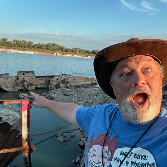 The story of the USS "Inaugural" is quite sad. She was a minesweeper and served successfully in the Pacific Theater of WWII. After the war, she was retired as a museum ship. A severe flood broke her loose from her moorings and she was grounded a mile downstream. Now, only her hull is visible above water. Since she has thus been declared a total loss and salvaging her is impossible, she was also stricken from the Landmark List. Indeed, a tragic end to a mighty warship.