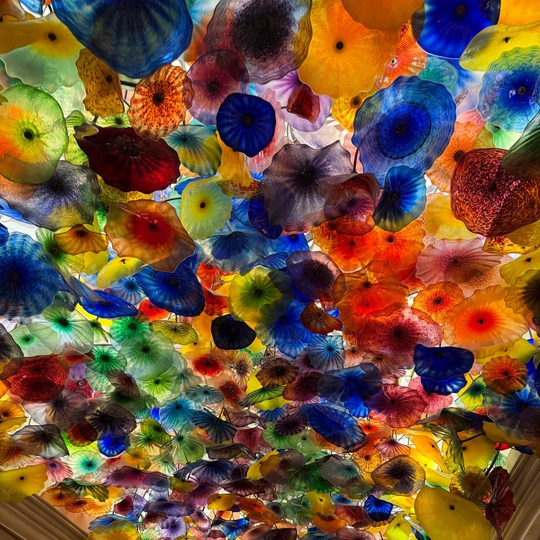 The Bellagio Hotel and Casino holds a world record because it houses the World's Largest Glass Sculpture in its hotel lobby, the Fiori di Como. The more than 2,000 colorful hand blown glass flowers that hang from the hotel lobby's ceiling were created by world-renowned artist Dale Chihuly. The name of the sculpture translates to "Flowers of Como."