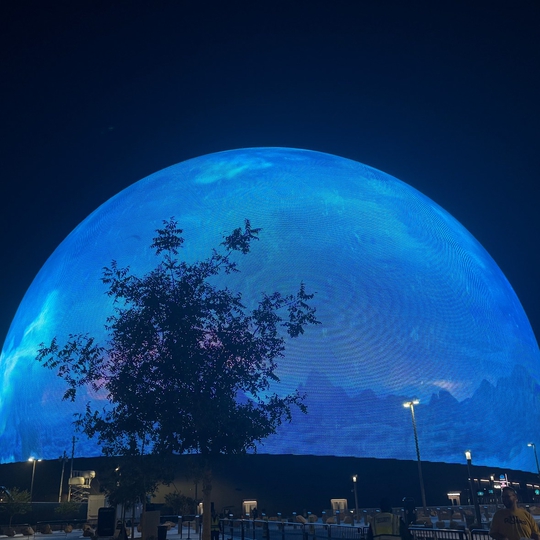 The Sphere stands as the world's largest spherical structure, towering at 366 feet tall and spanning 516 feet wide. Its theater showcases a state-of-the-art wraparound LED screen, boasting the highest resolution globally. Adorned with 1.2 million hockey puck-sized LEDs, the exterior can display dynamic imagery on an unprecedented scale, making it the largest of its kind. Nightly, the Sphere illuminates with captivating animations, adjusting to the seasons, transforming into a giant pumpkin for Halloween and a snow globe for Christmas, creating a breathtaking fusion of art and technology.