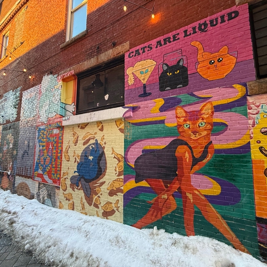 This open-air gallery is dedicated to felines. Cats of all kinds are splashed in bright colors on the brick walls - pretty cats, mysterious cats, ghostly cats, funny cats. Before the cat motif, this little side street was known for being unknown - a little alley with no defining characteristics. With a bit of networking and hard work, the alley has now become a sightseeing attraction revamping the area and the businesses.