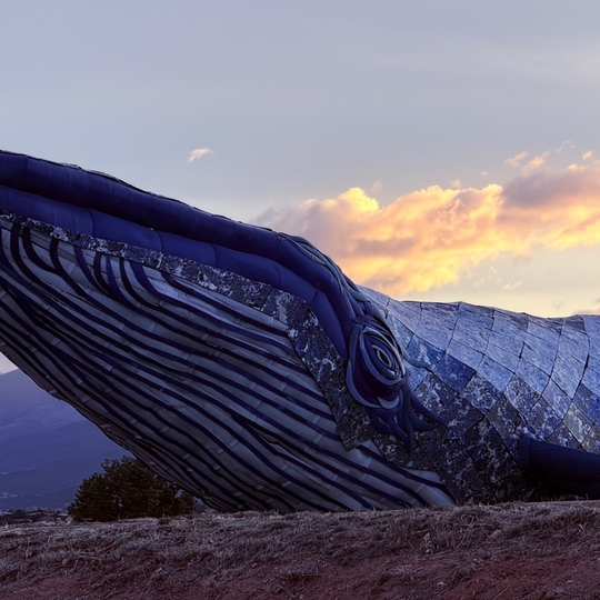 Ethyl the Whale is an 82-foot-long, life-sized blue whale sculpture made entirely from recycled plastic, holding the Guinness World Record for the largest recycled plastic sculpture . Created by artists Joel Stockdill and Yustina Salnikova, Ethyl was originally commissioned by the Monterey Bay Aquarium to raise awareness about plastic pollution . In 2019, the Santa Fe-based art collective Meow Wolf acquired Ethyl and relocated her to the Santa Fe Community College campus, where she continues to serve as a powerful symbol of environmental consciousness.