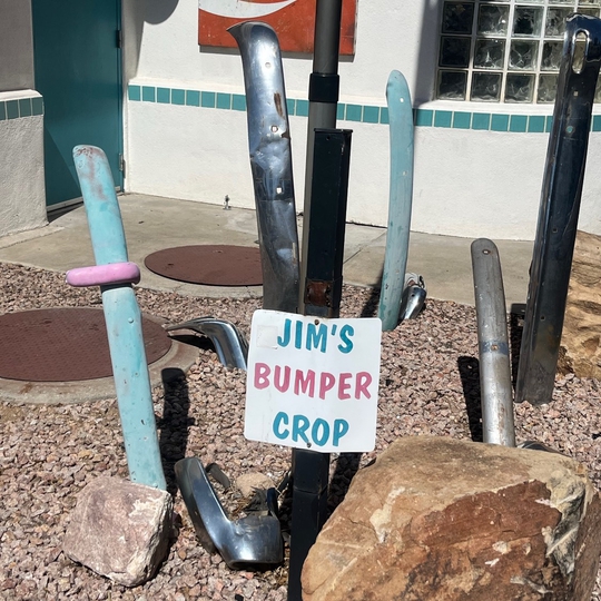 When you see the 66 Diner look at the wall of the building just across the parking lot just to its west. There you'll see the bright display of vintage road signs which make a great photo opp. So put on those poodle skirts, bobby socks, and cuffed jeans! Afterwards, get a milkshake at the diner for authentic 1950s experience!