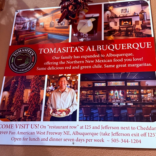 Tomasita's opened in 1974 when Georgia Maryol launched a small neighborhood cafe and named it after her friend and cook Tomasita Leyba, whose traditional recipes shaped the menu. The restaurant moved to its current location in the old railroad depot in 1979, which helped establish it as a Santa Fe landmark known for authentic Northern New Mexican cuisine. Popular dishes include red or green chile enchiladas, carne adovada, burritos, chile rellenos, and warm sopaipillas served with honey.