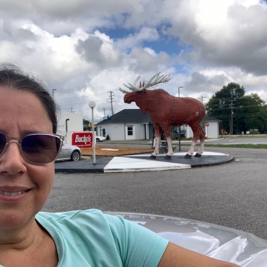 This 15-foot fiberglass statue of the largest member of the deer family is still an exaggeration of the antlered creature. He is the mascot for Bucko's, a fast-food hut serving up hotdogs and cheese steaks - or a livermush on Texas toast. Ironically, they don't serve any deer or elk meat.