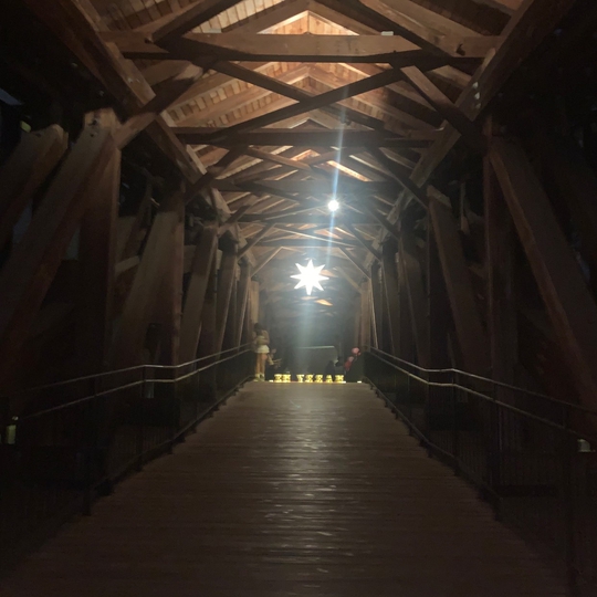 The Old Salem Pedestrian Bridge was created in 1998 through a project led by NCDOT. It serves as an overpass exclusively for pedestrians over the Old Salem Bypass, located between Walnut Street and Salem Avenue, and south of the Museum of Early Southern Decorative Arts' new extension. It's a significant landmark as it was the first to be constructed in North Carolina in the past 25 years and is one of only three in the state.
