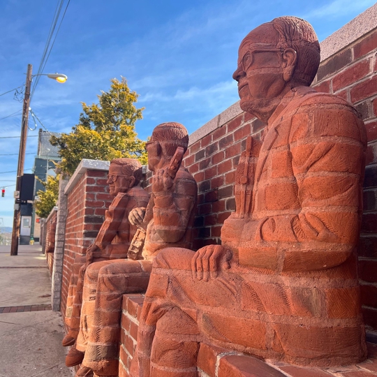 The Whittling Wall in Mount Airy pays tribute to local icons who have played pivotal roles in shaping the town's history and culture. Sculpted by North Carolina artist Brad Spencer, this remarkable wall features representations of key figures like legendary musicians Tommy Jarrell and Fred Cockerham, radio pioneer Ralph Epperson, country singer-songwriter Donna Fargo, pioneering educator L.H. Jones, visionary businessman Floyd E. "Flip" Rees, and The Mill Worker, symbolizing the tireless labor force in local textile mills.