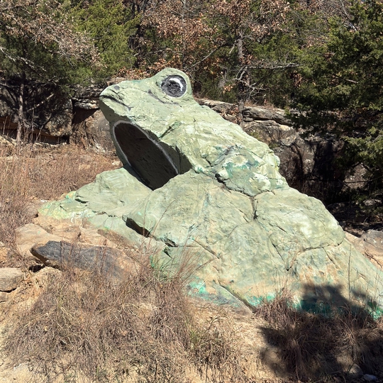 Someone must have seen potential in this hunk of rock; it is carefully painted a bright green and includes a bug-eyed stare of the hoppy amphibian. Although we'd like to think the entirety of this mass is authentic, unfortunately, another visitor discovered that the eye was constructed from wood and concrete. As road trip journalists point out, the eye might have been reconstructed as the frog attracts vandals. While there you can swim in the nearby lake or visit Frog Road Park.