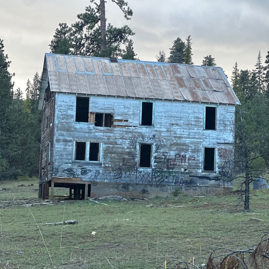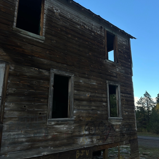 Supposedly haunted, this white clapboard building is said to have had a store downstairs and a brothel upstairs. The hotel and mine are examples of Oregon's boomtowns which rose up quickly and disappeared almost just as quickly. With no maintenance and a steady stream of vandals the building is slowly returning to nature.