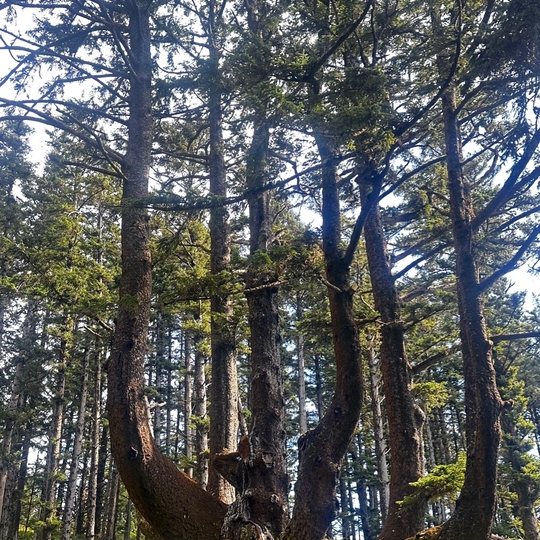 This Sitka spruce was once a ceremonial tree of the Tillamook tribe. Its uniqueness is debated. Some believe the odd shape is purely manmade - the tribe would choose a special tree that had not yet matured and then restraints would be used to force the tree to grow into its unnatural position. Others believe that natural events wreaked havoc on the tree resulting in the cephalopod-like limbs. Whatever it's origin is it is certainly a striking curiosity.