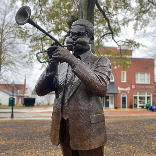 Dizzy Gillespie was an influential American jazz trumpeter, composer, and bandleader, known for his virtuosic playing and significant contributions to the development of bebop in the 1940s. He was a master of improvisation and an innovator, blending complex harmonies and rhythms into his music. Gillespie's signature "puffy cheeks" while playing the trumpet became an iconic image in jazz. His collaborations with other jazz legends, such as Charlie Parker and Thelonious Monk, helped define the sound of modern jazz.