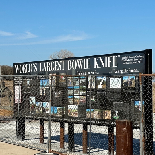 One of the nicest looking "World's Largest" items in Texas is the Bowie Knife in a town with the same name. While other extremely large items in Texas are chipped, degraded, or inexpertly painted, the Bowie Knife of Bowie is all clean lines and perfect edges of steel, wood, and brass.