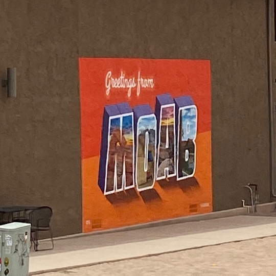 The "Greetings from Moab" mural located at 169 N Main St. is a vibrant and colorful artwork that spans the entire side of a building. It was created in 2018 by the artist Tracie Spence and is one of the most popular murals in the town of Moab.