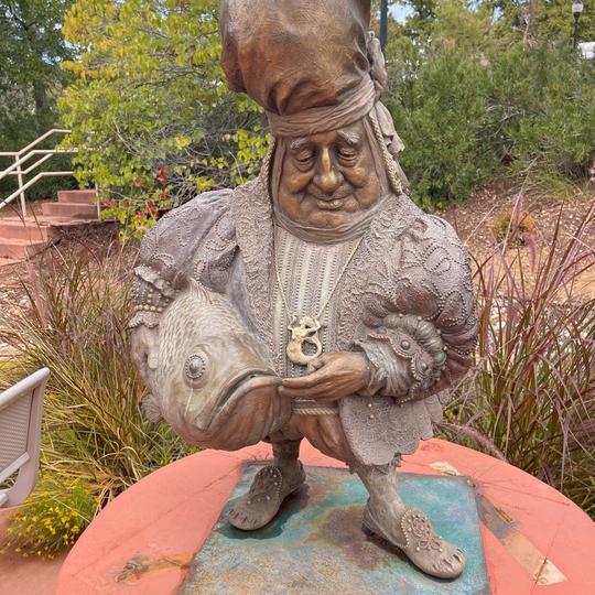 Officially titled "Dad" and crafted from Utah license plates, Deveren Farley's sculpture stands at the roundabout on 200 North and Main Street. It is about 12 feet tall, over 8 feet wide, and spans 18 feet from head to tail.