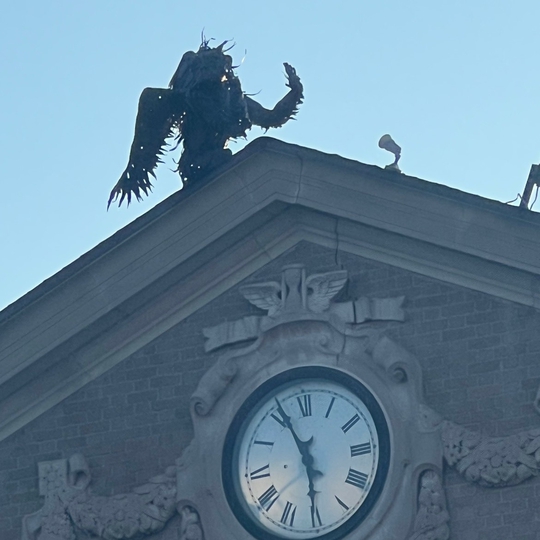 The Wicked Witch of the West's minions are cast in steel, six of them alighting on top of two historic buildings. The first one was created in the 1970s, its original purpose being the mascot of a store called Emerald City of Oz. In 2005, the last two were made - a baby boy and girl spawned by two love-monkeys.