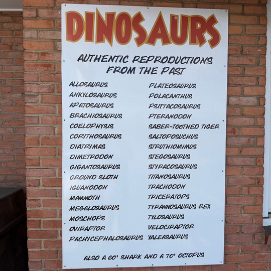 Started over 50 years ago, this prehistoric-themed park was originally built to attract interest to the owner's already-established gift and souvenir shop. Not all the creatures are landlubbers; there is also a 70-foot octopus and 60-foot shark. A 14-foot praying mantis is worthy of any B-movie horror flick. And the scene is replete with cave-people who will happily join you in a photo.
