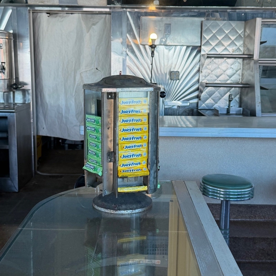 The Triangle Diner, an iconic American diner in Winchester, Virginia, was built in 1948 by the Jerry O'Mahony Diner Company of New Jersey and is one of the best-preserved classic diners in the country. Almost entirely original, it boasts ornate stainless steel exterior detailing, a rounded ceiling with hidden lighting, classic counter seating with stools, booths, and a terrazzo concrete floor, all of which capture the nostalgic charm of mid-20th century American dining.