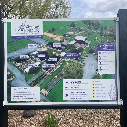 White Oak Lavender Farm & The Purple WOLF Tasting Room in Harrisonburg, VA, offers a tranquil experience blending agriculture and relaxation. Visitors can explore the beautiful lavender fields, learn about the growing and harvesting process, and shop for a variety of lavender-based products. The Purple WOLF Tasting Room provides a unique complement, where guests can sample wines infused with lavender, adding a distinctive touch to local winemaking.