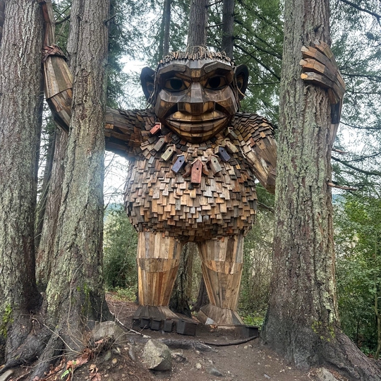 Located along the Rainier Trail in Issaquah, WA, Jakob is a striking public art installation that emphasizes the importance of protecting nature and honoring the land and waterways. Created entirely from recycled materials, Jakob is one of five large-scale trolls in the Seattle area crafted by Danish environmental artist Thomas Dambo. Standing approximately 14 feet tall, Jakob gazes down at passersby on the trail, sparking curiosity and reflection.