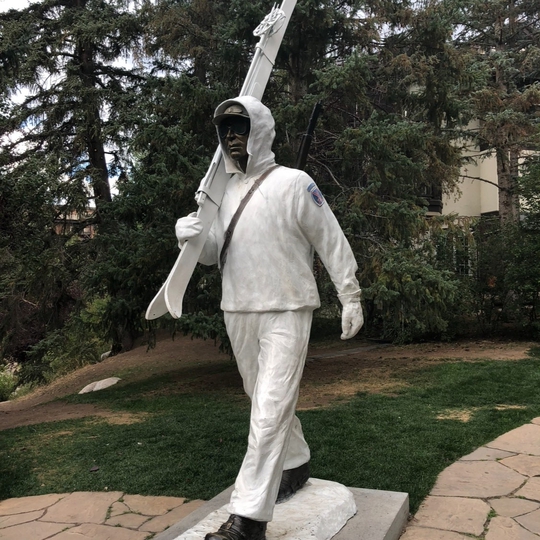 The bronze sculpture "Ski Trooper" by Scott Stearman stands proudly in Vail, Colorado, paying homage to the brave soldiers of the U.S. Army's 10th Mountain Division. This remarkable artwork commemorates their rigorous training in winter warfare within the region during the tumultuous era of World War II.