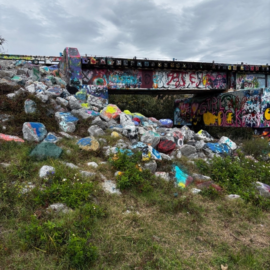 Still in use by a transportation company this bridge has been a favorite for local urban artists. Every once in a while the bridge will be painted over with a thick layer of a uniform color allowing the next set of artists to display their talents. Some graffiti newbies have tried out their spray-painting skills for the first time at this spot. What you see on the bridge today might be gone tomorrow; everyone is allowed to add their contribution to the bridge.