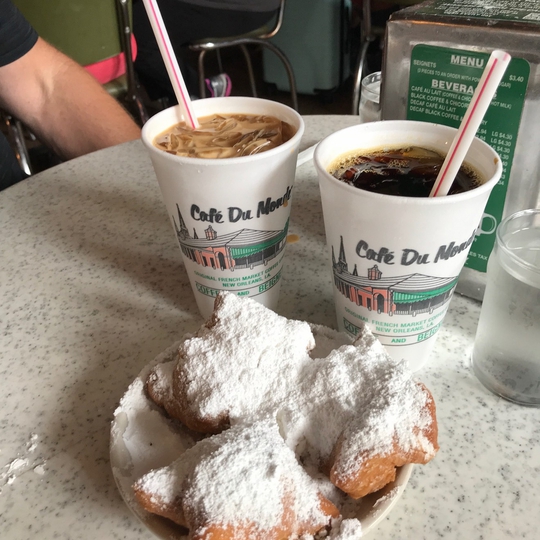You might have seen those yellow cans of coffee in the supermarket labeled with "Café du Monde" - a blend of coffee and chicory which originates from New Orleans. Here is the eponymous cafe which lent its name to the coffee, but is also known for delicious, fried breakfast beignets dusted with a generous coating of powdered sugar. A trip to New Orleans is not complete until you've stopped here for beignets and a cup of coffee.