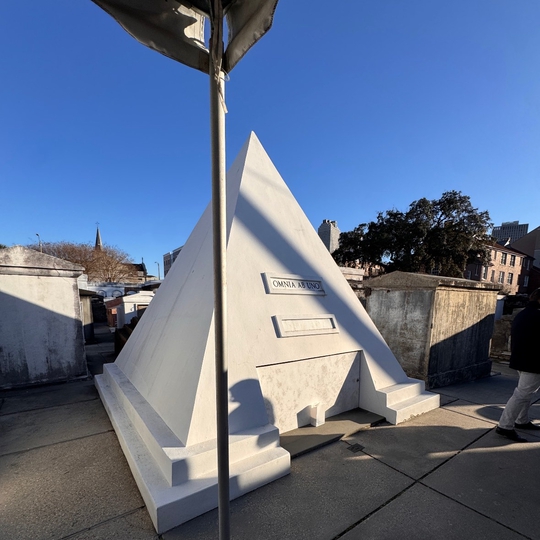 Nicholas Cage has an odd history with this city - he has bought historic landmarks and has had to forfeit those landmarks after IRS issues. This last piece of property yet remains in his possession - a gleaming white pyramid in the St. Louis Cemetery No.1. Even though he has lost his Louisiana properties his final resting place is locked in place just awaiting its inhabitant. If you're not a germaphobe, you can leave a lipstick kiss on the tomb along with thousands of others.