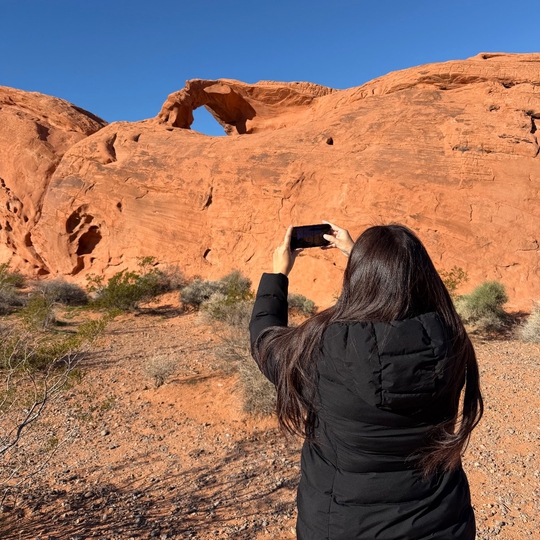 Within the rusty alien landscape of Valley of Fire State Park is a curving arch right next to the road. Fortunately, you don't have to walk far to see this natural formation, a definite plus during the scorching summer heat. There is a small fee for each vehicle to enter the park but the untouched beauty of the sparse brimstone landscape is well worth your time and the cost.