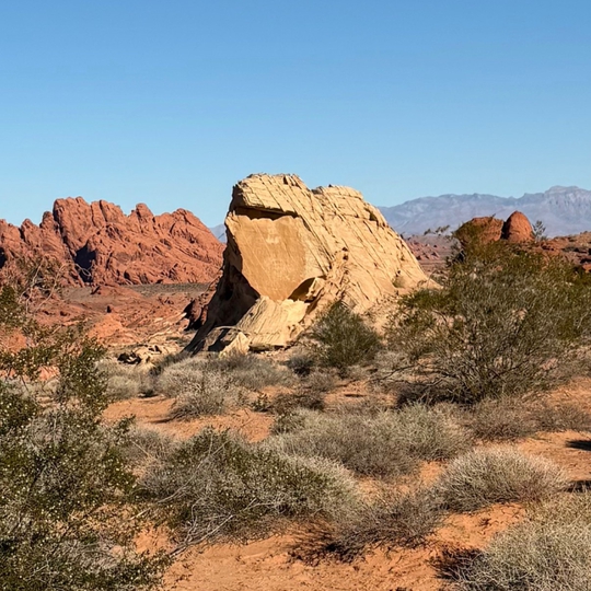 About three-quarters of the way into the White Dome Loop Trail, you’ll spot the famous Iguana Rock on the left side of the path. From a distance, it looks just like an iguana perched in the desert. As you get closer, the illusion fades and you’ll realize it’s actually two separate rock formations sitting side by side. Up close, they’re simply two rugged rocks rising out of the landscape, but the visual trick from afar is what makes this spot so memorable.