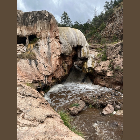 The Jemez Soda Dam, located in Jemez Springs, New Mexico, is a remarkable natural formation composed primarily of calcium carbonate. Created over thousands of years by the mineral-rich waters of the Jemez River, this travertine dam stands approximately 300 feet long and 50 feet high, presenting a striking geological feature in the scenic Jemez Valley. The Soda Dam is not only a fascinating geological structure but also a popular tourist attraction, drawing visitors who come to admire its unique appearance and the natural hot springs that flow through and around it.