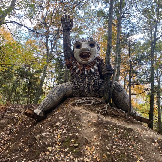 Iver Mudslider is a towering wooden troll sculpture created by artist Thomas Dambo in North Kingstown, Rhode Island. Crafted from recycled materials, the troll appears to be rising from the earth, blending into the surrounding natural landscape. As part of Dambo’s larger “Trolls Around the World” project, Iver Mudslider invites visitors to explore, reflect on nature, and enjoy a touch of whimsical storytelling.