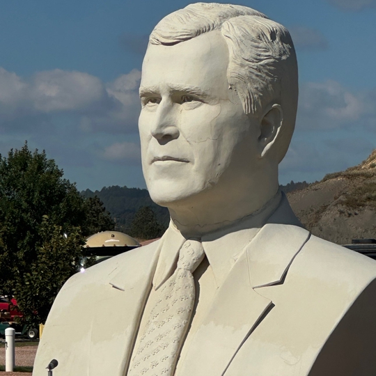 These 15-foot busts and heads of the Presidents Reagan, George W. Bush, and JFK provide you with an alternative to the views of the the gigantic Presidential faces carved into Mt. Rushmore just down the road. That is, if you want an alternative. But just along the same line as Mt. Rushmore - you don't have the opportunity to see giant busts of Presidents every day!