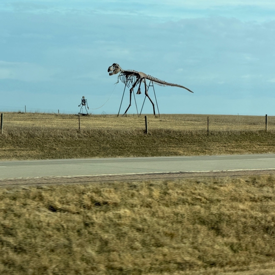 The name of this landmark is an apt description too - what looks like a leashed T-Rex skeleton is led by a small and gangly human skeleton. It's a random and unique piece of roadside art, one of the best to be found in the nation. Visitors report that it's difficult to park to get a better picture, so have your passenger snap a picture as you pass by. For a better view, you may want to try the side of the I-90 that is west-bound.
